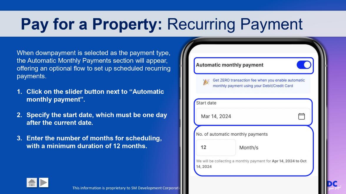 After you pay the reservation fee and submit all necessary documents, SM Development Corporation (SMDC) will email your Schedule of Payment (SOP) with payment due dates and amounts. Please prepare post-dated checks for your monthly amortizations as per the SOP and submit them to the SMDC Head Office.
